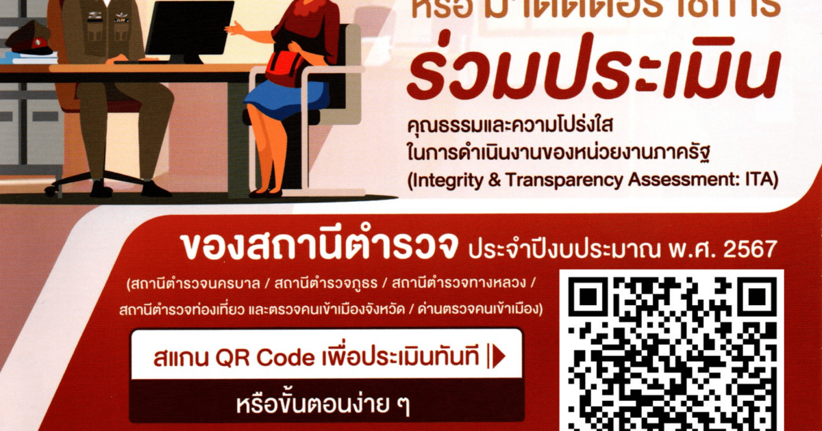 สถานีตำรวจภูธรคลองขนาน เชิญชวนผู้ติดต่อ ผู้ใช้บริการ หรือผู้เยี่ยมชมเว็บไซต์ของสถานี ร่วมตอบแบบประเมินวัดการรับรู้ผู้มีส่วนได้เสียภายนอก การประเมินคุณธรรมและความโปร่งใส ในการดำเนินงานของหน่วยงานภาครัฐ (Integrity & Transparency Assessment: ITA) ของสถานีตำรวจ ประจำ ปีงบประมาณ พ.ศ. 2567 โดยมีวัตถุประสงค์