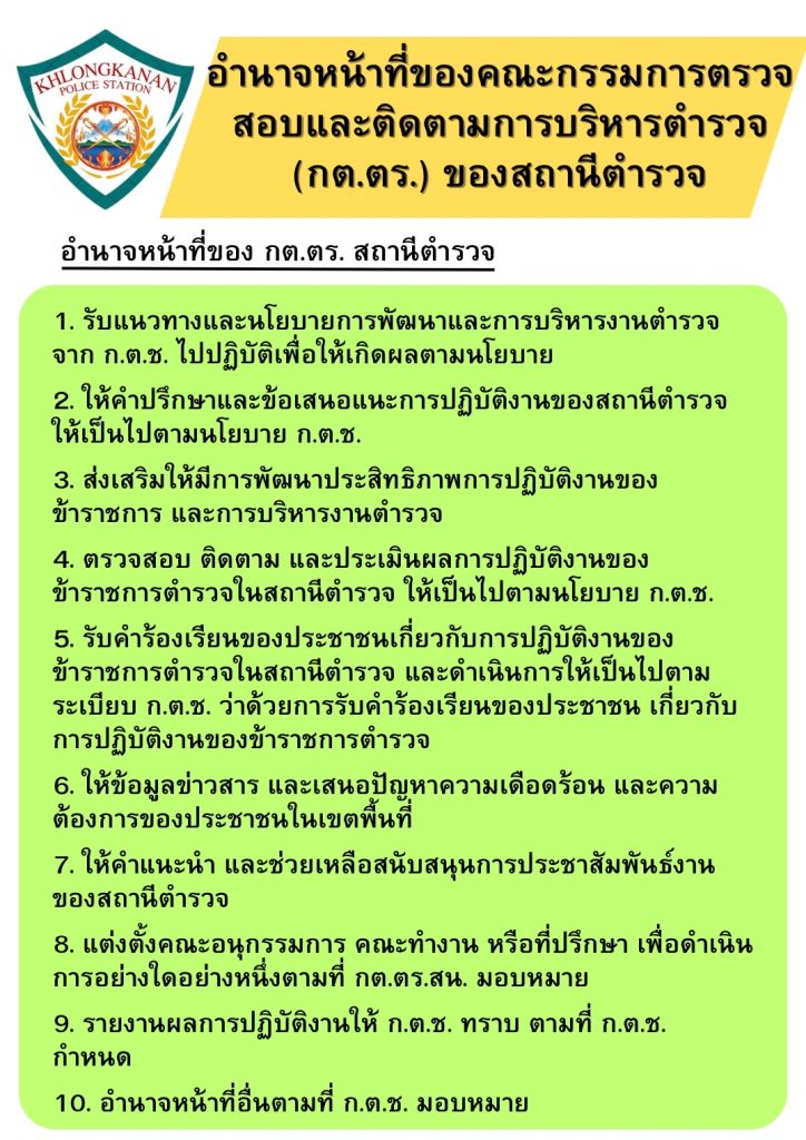 ข้อมูลคณะกรรมการตรวจสอบและติดตาม การบริหารงานตำรวจ (กต.ตร.) ของ สถานีตำรวจภูธรคลองขนาน